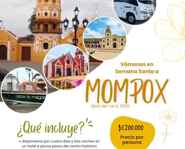 Mompox no es solo un destino, es un viaje en el tiempo. Con nuestro plan exclusivo, disfrutarás de la perfecta combinación entre fervor religioso, historia colonial y naturaleza ribereña